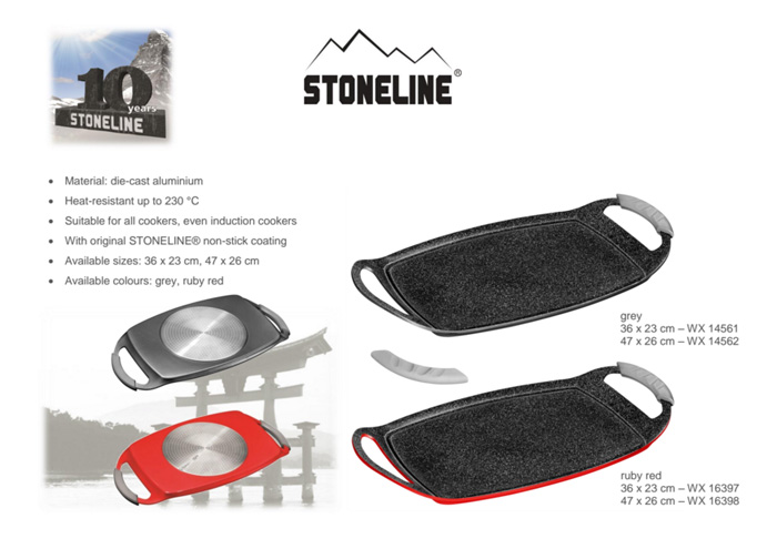 Торговая марка STONELINE разработала новую модель гриля Teppan Yaki, дизайн которой основан на японских кулинарных традициях. Изделие производится из литого алюминия и подходит для использования на всех типах плит.
