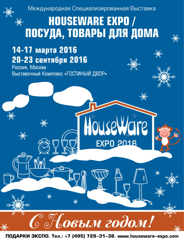 Организатор крупнейшего в Восточной Европе Международного выставочного проекта «HOUSEWARE EXPO / ПОСУДА, ТОВАРЫ ДЛЯ ДОМА» - «ПОДАРКИ» - «НОВЫЙ ГОД ЭКСПО» сердечно поздравляет Вас с наступающим Новым Годом!