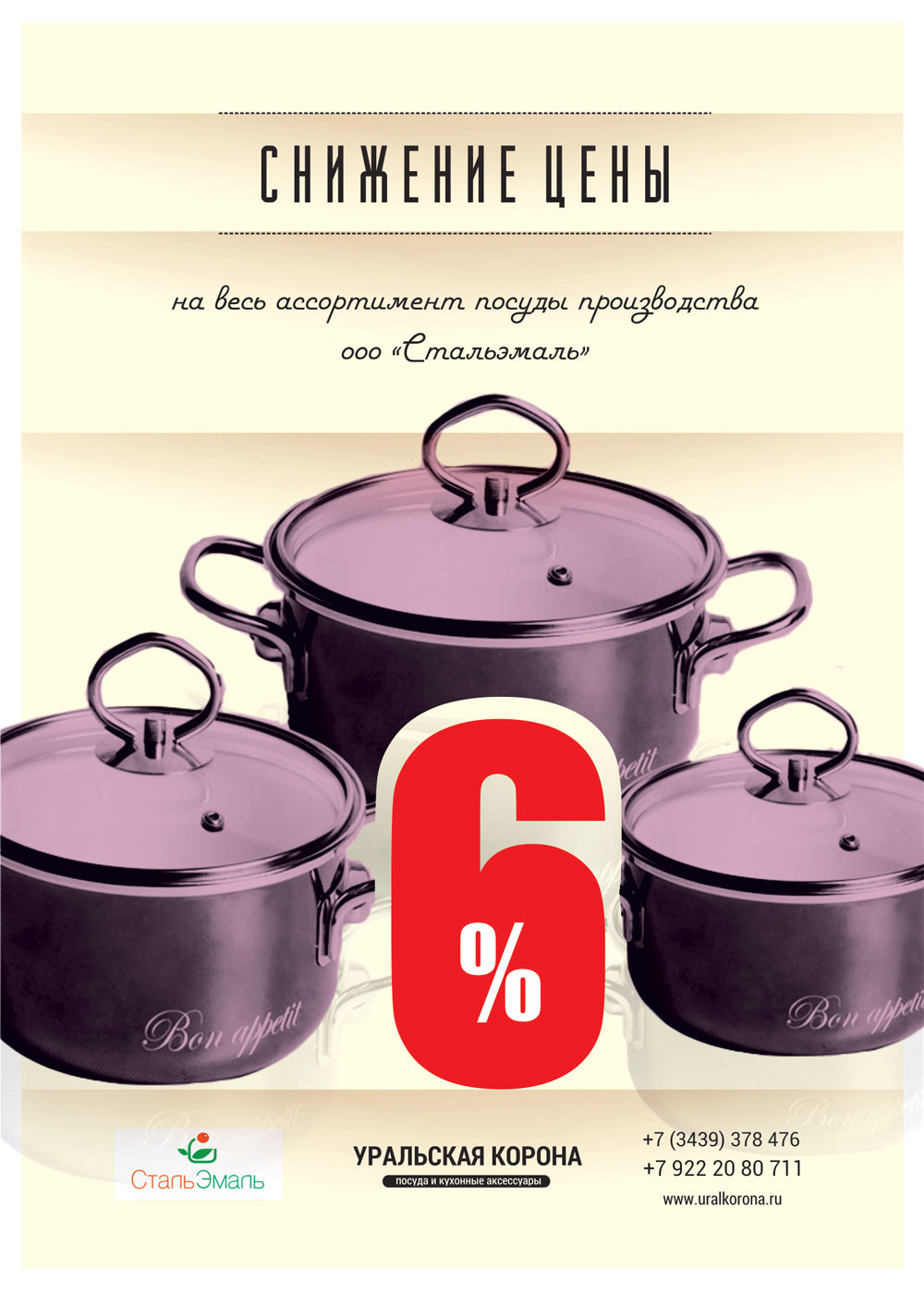 Компания "Уральская корона" сообщила о снижении цен на 6% на весь ассортимент продукции, выпускаемой заводом "Стальэмаль".