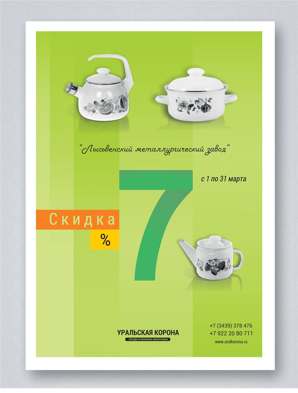 С 1 по 31 марта 2016 года в компании "Уральская корона" действуют скидки на продукцию "Лысьвенского завода эмалированной посуды". На отдельные товары действует скидка в размере 7%. В акции участвует следующий ассортимент: