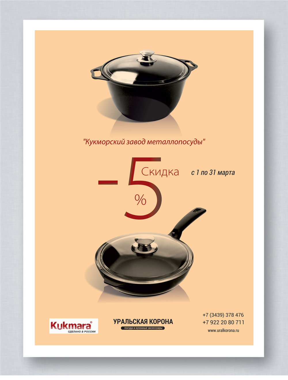 До 31 марта в компании "Уральская корона" действует акция на продукцию Кукморского завода металлопосуды. Скидка в размере 5% действует на следующие артикулы: