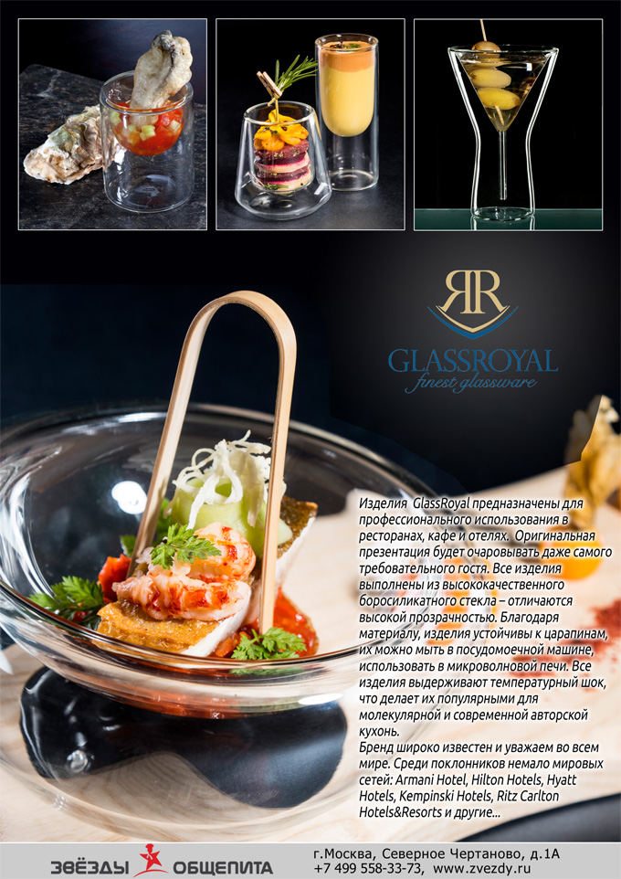 Компания "Звезды Общепита" представила новый бренд Glass Royal (Австрия), который производит двустенные изделия из боросиликатного стекла. Посуда Glass Royal предназначена для профессионального использования в ресторанах, кафе и отелях.