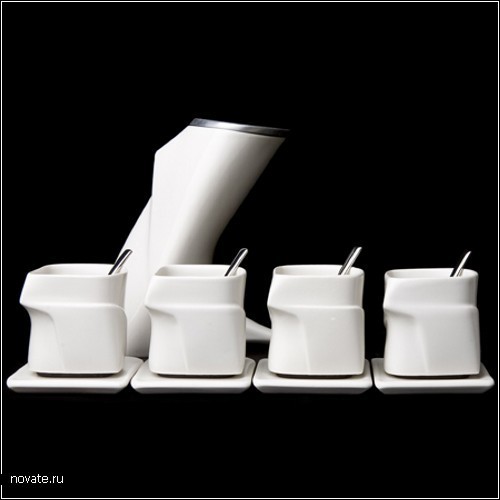 Дизайнерская придумка. Ну, кто сказал, что чайник должен быть круглым и пузатым? Пусть хотя бы этот будет угловатым и неправильной формы, как и чашки в сервизе.