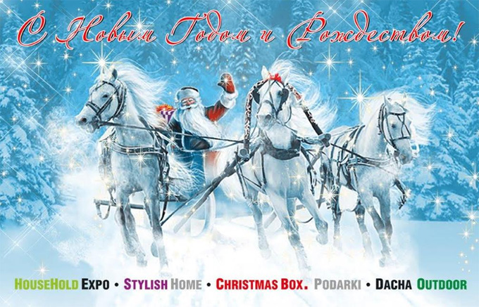 Организаторы международных выставочных проектов HouseHold Expo, Stylish Home, Christmas Box. Podarki, Dacha Outdoor сердечно поздравляют Вас с наступающим Новым годом и Рождеством!