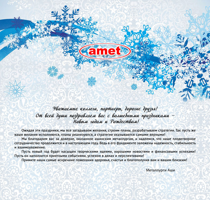 Ашинский металлургический завод поздравляет с Новым годом и Рождеством!