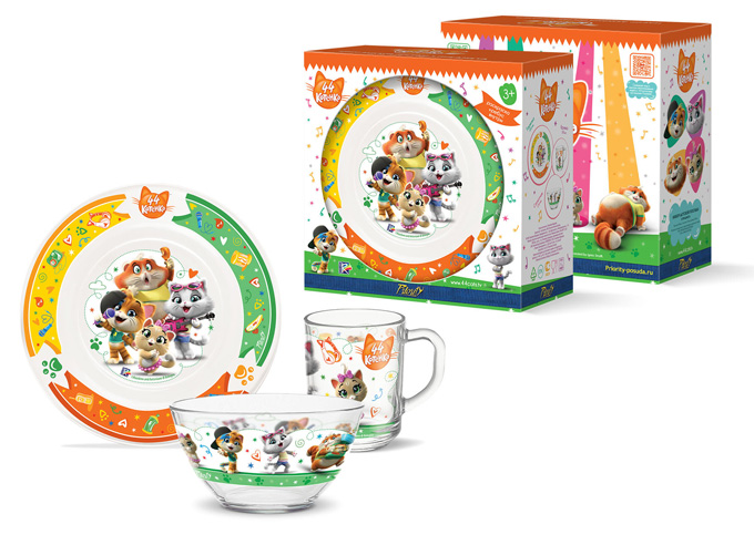 Ассортимент компании PrioritY пополнился двумя новыми наборами детской посуды из стекла «44 котёнка» и «В поисках Немо».