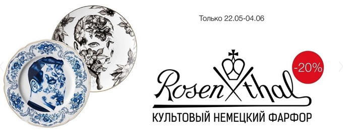Петербургский магазин "Галерея дизайна bulthaup" проводит акцию. С 22 мая по 4 июня 2020 года действует скидка 20% на коллекции посуды Rosenthal и Thomas при заказе на сайте . В ассортименте представлена посуда из фарфора и стекла, мебель и предметы декора.