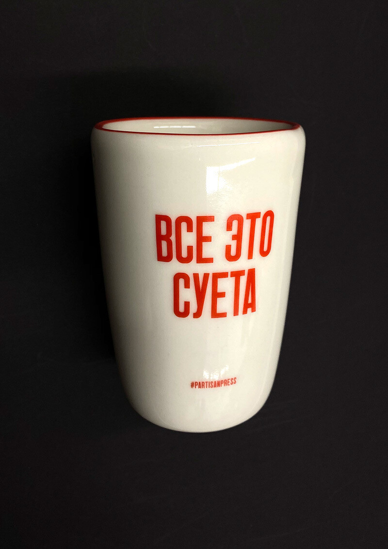 Мастерская керамики Redneck Ware и арт-мастерская плакатов «Демоны печати» выпустили коллекцию керамических чашек со словами авторских плакатов проекта Partisan Press. Коллекция включает в себя 16 вариантов чашек со слоганами. Чашки выполнены без ручек, объем - 330мл.