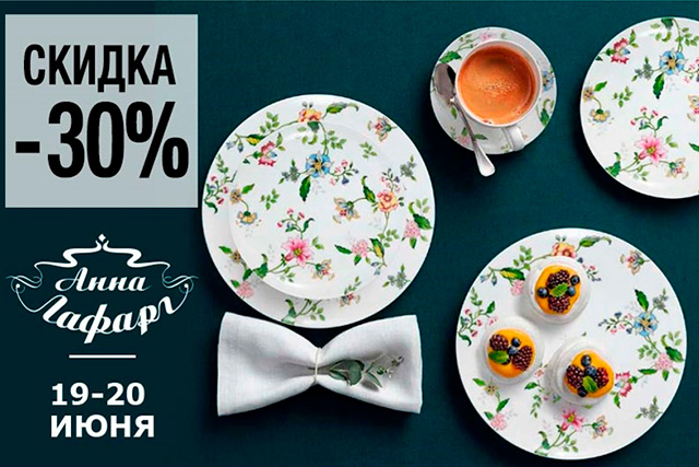 19 и 20 июня 2023 года розничный проект Vazaro проводит "Клиентские дни". На посуду из фарфора Easy Life R2S, Anna Lafarg и MAXWELL & WILLIAMS действует скидка 30%.