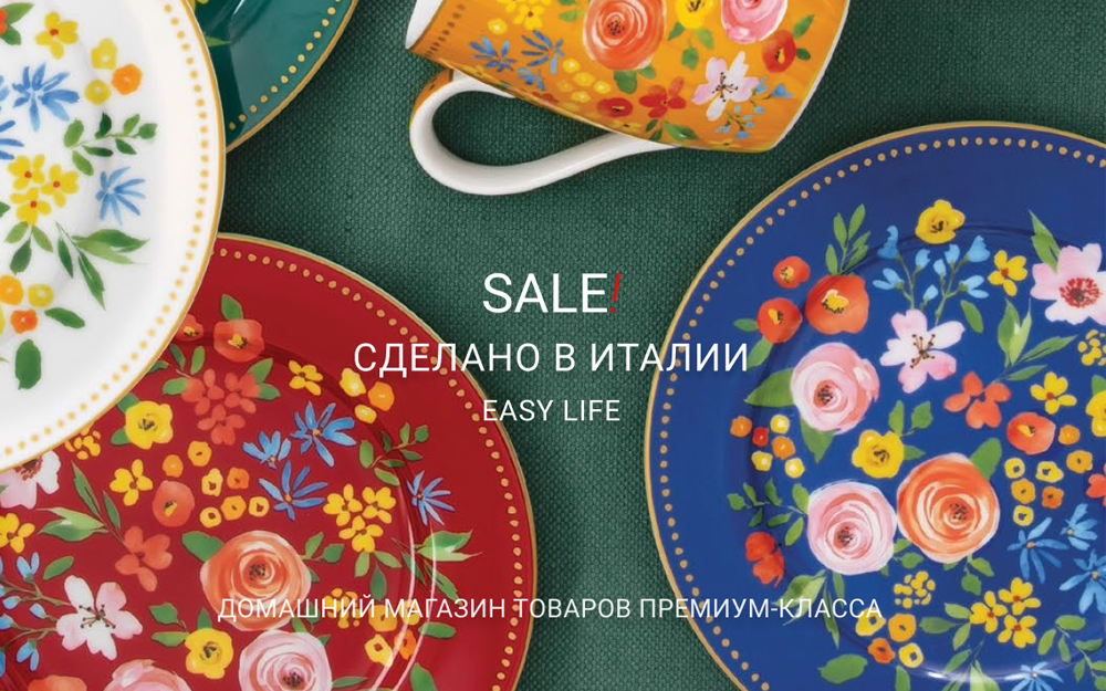 Сеть магазинов "Евродом" объявила о проведении большой распродажи итальянской посуды Easy Life. В ассортименте представлены кружки, тарелки, салатники, различные наборы для сервировки и т.д.