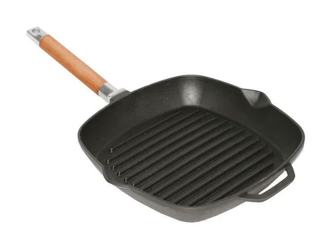 Блюда, приготовленные на гриле, являются одним из символов лета. На углях на свежем воздухе отлично готовить сезонные овощи, а продуктовые магазины в летний сезон обычно кратно увеличивают предложение по стейкам, колбаскам, рыбе и т.д. Но если вдруг продукты есть, а возможности выйти на свежий воздух нет - на помощь приходит сковорода-гриль. С ее помощью можно добиться если не похожего вкуса (жарка на углях принципиально отличается от жарки на сковороде), то похожего вида - с аппетитными полосочками. Мы подготовили обзор предложений сковород-гриль в средней ценовой категории в пределах 3 тысяч рублей, но с максимальной функциональностью за счет возможности использования в духовом шкафу и квадратной формы.