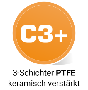 Покрытие Greblon C3+ состоит из трех слоев, в качестве усиления используется керамика. Сочетание антипригарных свойств и устойчивости к износу является одним из самых высоких в линейке покрытий Greblon.