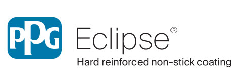 Eclipse от PPG - трехлойная антипригарная система с армированным базовым слоем, усиленным твердыми частичками средним PTFE слоем и финишным слоем с улушенными характеристиками. По меркам PPG данное покрытие обладает лучшей, по сравнению с другими версиями, устойчивостью к истиранию (60 тыс. циклов влажного теста на истирание) и царапинам.