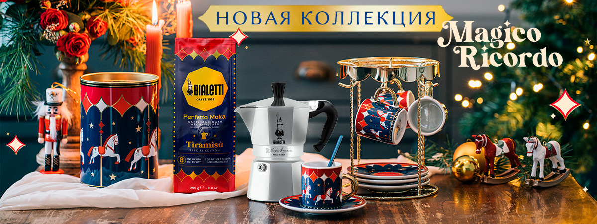 Торговая марка Bialetti в преддверии новогодних праздников представила новую коллекцию Magico Ricordo ("Волшебные воспоминания"). В нее вошли наборы стаканчиков для эспрессо, кофейных пар и чашек для кофе, сахарница и фирменный молотый кофе.