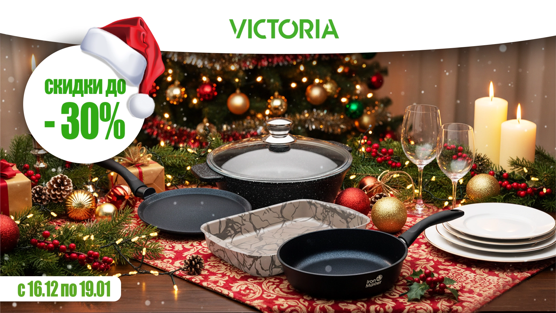 В фирменном интернет-магазине ПЧУП "Виктория" (Республика Беларусь) с 16 декабря 2025 года по 19 декабря 2026 года проводится акция. На выделенный ассортимент литой алюминиевой посуды с покрытием действуют скидки. В акции участвуют: