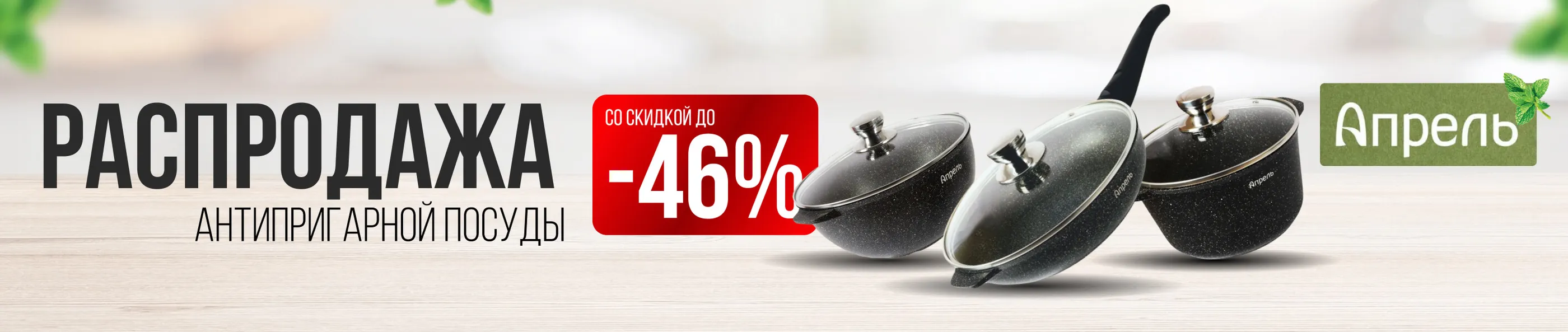В интернет-магазине Ozon проводится распродажа литой алюминиевой посуды "Апрель". На сковороды, кастрюли, казаны и жаровни из литого алюминия с антипригарным покрытием действуют скидки до 46%.