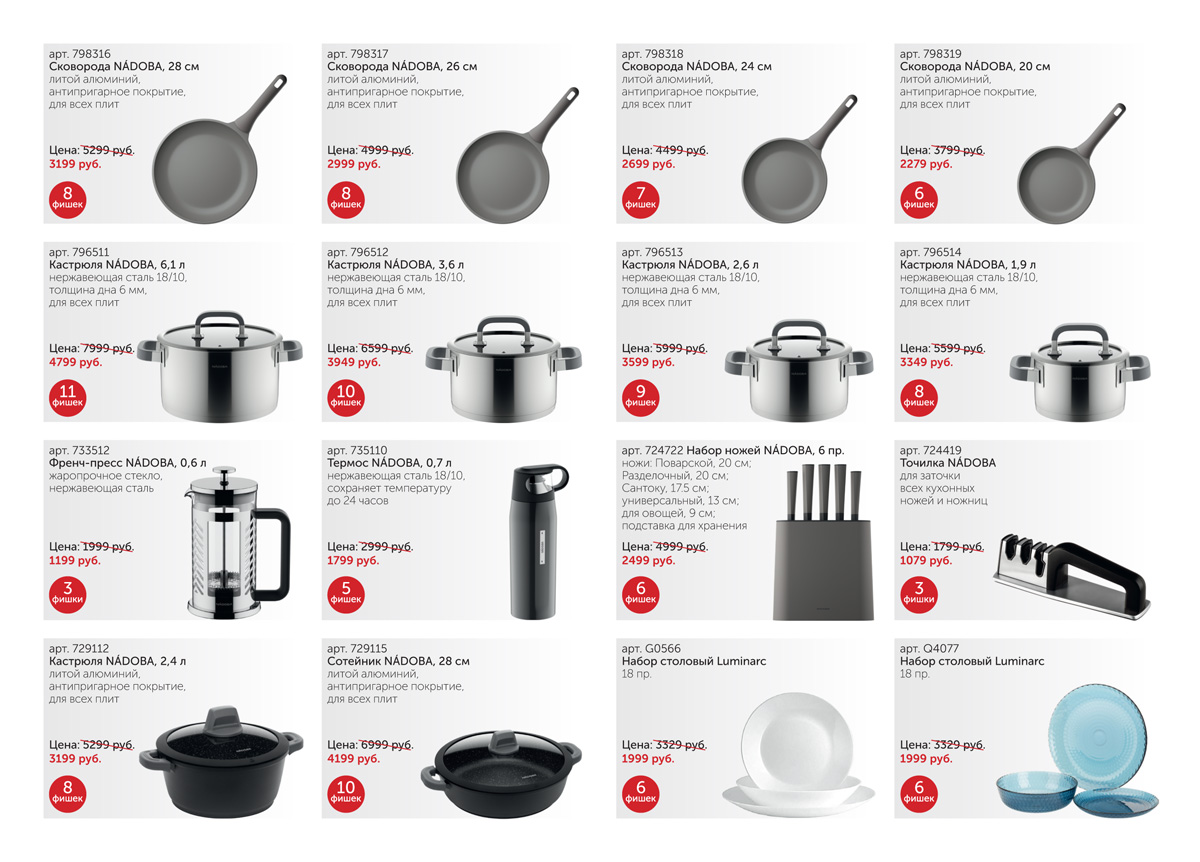 Во владивостокских магазинах «Зеленый остров» и «Технодром» проводится акция лояльности на посуду торговых марок Nadoba и Luminarc. При покупке любых товаров в магазинах на сумму более 500 рублей каждому покупателю выдается буклет для участия в акции и необходимое количество специальных наклеек (фишек). Фишки выдаются при покупке за каждые полные 500 рублей в чеке. Собрав необходимое количество фишек, участник акции имеет право приобрести товары, указанные в буклете со скидкой 50%.