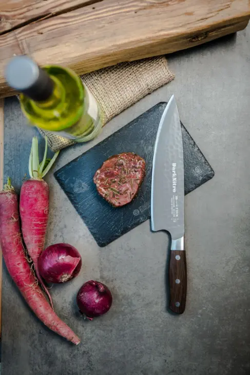 Серия кованых ножей DarkNitro от Friedr. Dick - вершина ножевого искусства. Изделия отличаются сочетанием уникального внешнего вида клинка с рельефом, достигаемым в процессе ковки, с особой рукояткой из дуба. Антрацитовый цвет лезвия получается с помощью специального экологически чистого процесса. Клинки проходят ледяную закалку для исключительной твердости и остроты.
