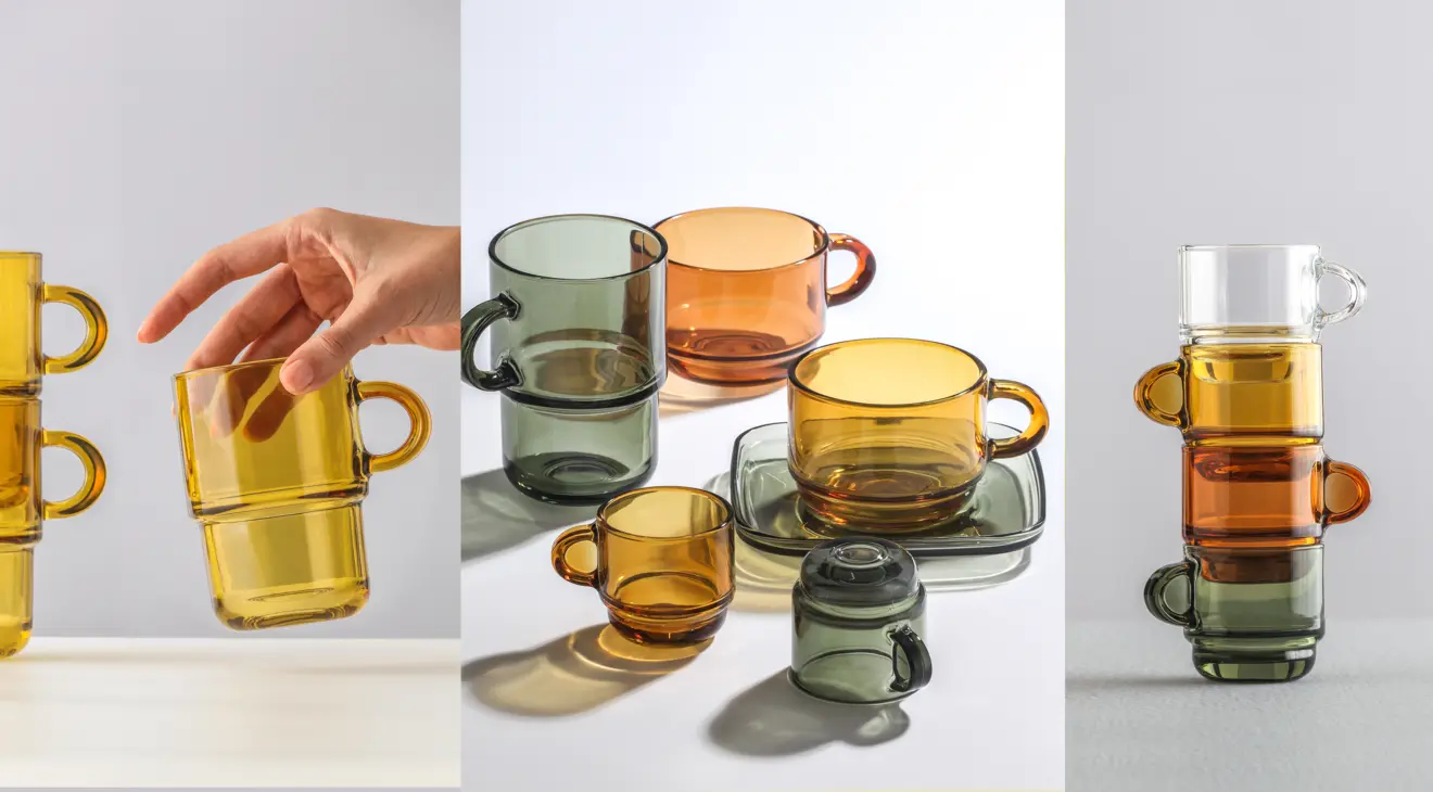 Набор для горячих напитков Cozy от LAV выполнен в ретро-эстетике в сочетании с современными элементами, дизайн посуды одновременно вызывает ностальгию и предлагает продуманную функциональность. Плавные формы сочетаются с теплыми оттенками янтаря, золота и нефрита. Продуманная эргономика дополнена возможностью штабелирования чашек, что добавляет удобства использования.