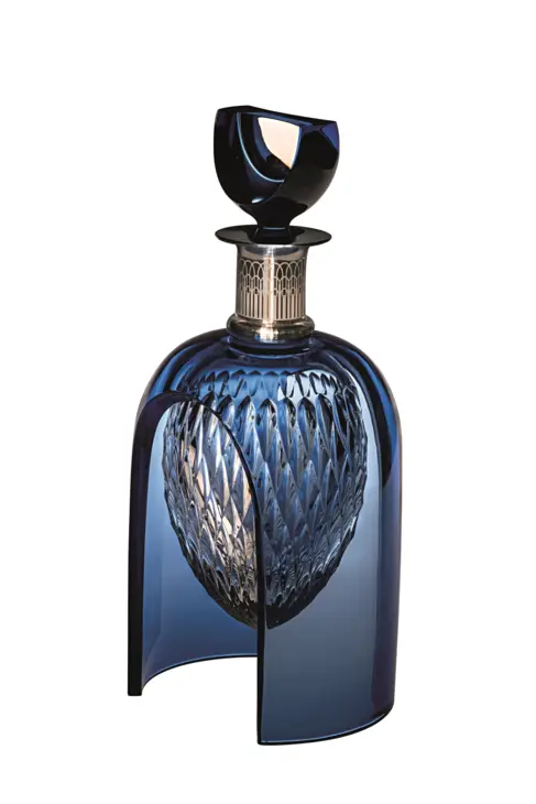 Вторая версия культового графина Magno от Vista Alegre отличается сложной технической и художественной работой, в результате которой к прозрачному хрусталю добавлены слои цвета с использованием традиционной техники закалки стекла. Синее покрытие обнажает резной корпус из хрусталя, различные компоненты имеют симметричную огранку. Изделие выпущено ограниченной серией в 33 экземпляра.