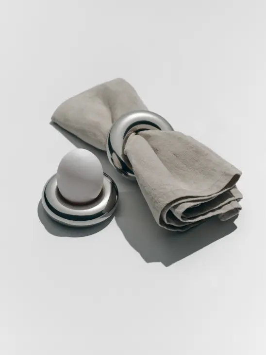 Подставки из нержавеющей стали Mood Circles от L/DB STUDIO сочетают формальный минимализм с функциональностью и обладают прочностью, качеством и универсальностью. Изделия могут использоваться как кольца для салфеток или как подставки для яиц.