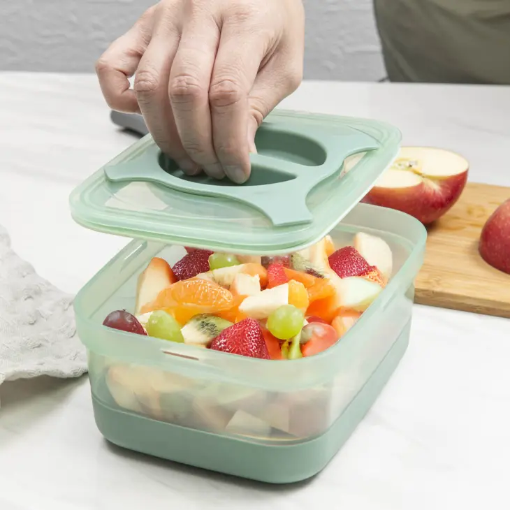 Ланч-бокс Prestoor отличается инновационной конструкцией с поворотным замком, который можно открывать одной рукой. Крышка обеспечивает полную герметичность, гигиеничность и удобство использования. Нескользящее основание также выступает термоизолятором. Ланч-бокс можно использовать в микроволновой печи и морозилке. Несколько изделий можно ставить друг на друга. Ланч-боксы полностью разбираются для удобного мытья.