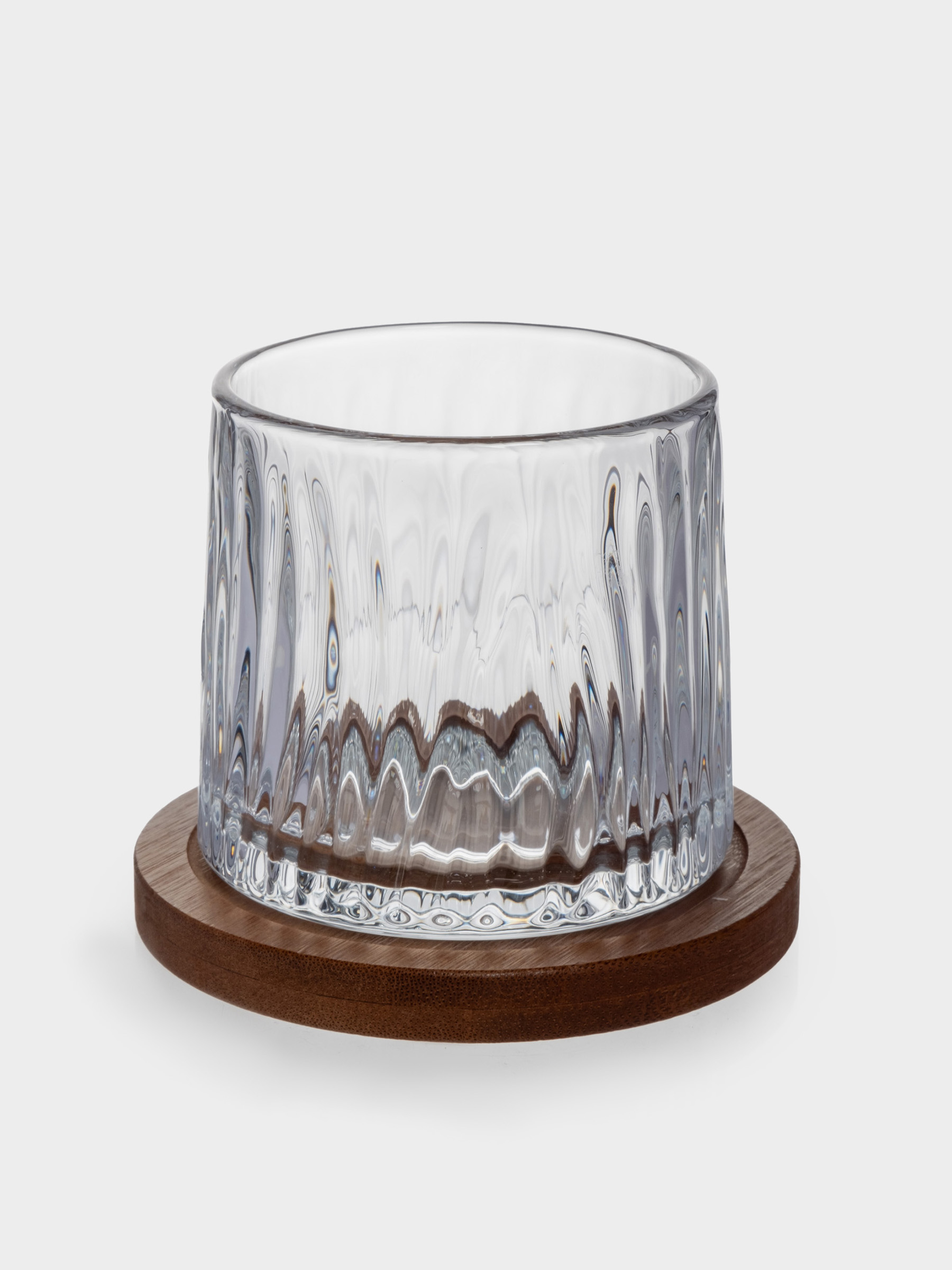 Стакан на бамбуковой подставке имеет выемку по центру дна для вращения вокруг своей оси. Страна производства - Китай.