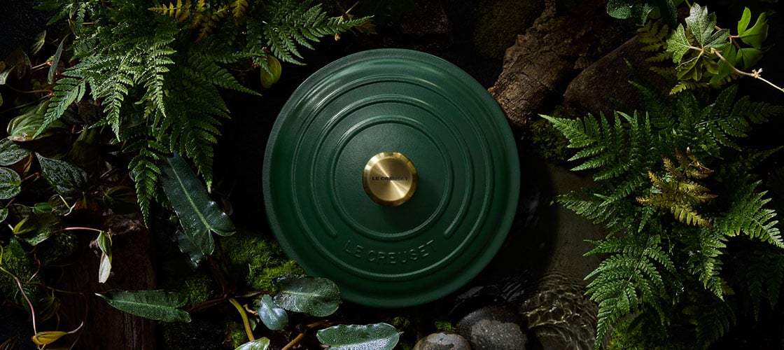 Французский бренд Le Creuset расширил палитру оттенков выпускаемой посуды новым цветом Forêt (лес). В посуде сочетается глубокий натуральный зеленый цвет эмали, матовые поверхности и "золотая" фурнитура. В коллекции представлены как чугунная эмалировання посуда, так и посуда из керамики для запекания.