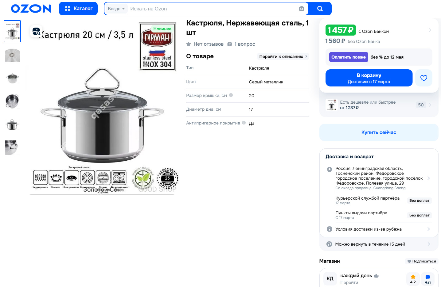 Посуду российских марок, даже если она производится в Китае, надежнее покупать у нас, в идеале – напрямую у официальных продавцов на том же Озоне (информацию о наличии интернет-магазинов на основных маркеплейсах у того или иного бренда можно посмотреть в карточках брендов кухонной посуды на сайте bescookware.ru).