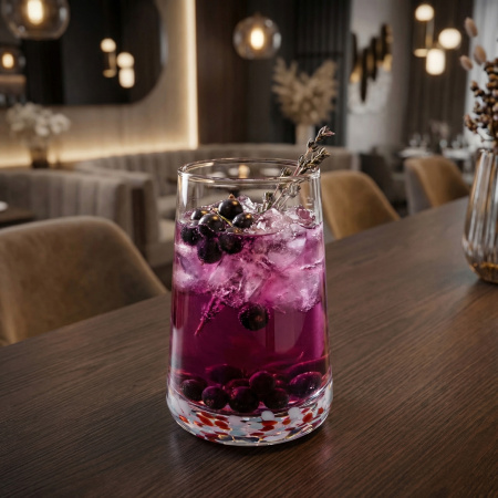 Бокалы олд фэшн и хайбол с необычным цветным узором: декор делает изделия заметным элементом сервировки и помогает добавить в подачу визуальный акцент, сохраняя универсальность формы.