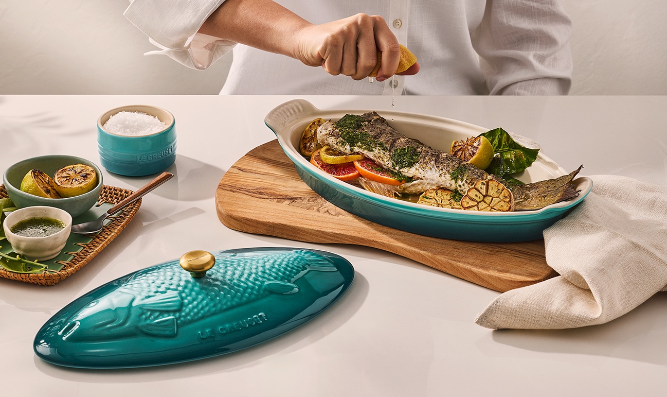 Французский бренд Le Creuset представил Bleu Riviera - яркий, свежий и насыщенный сине-зеленый оттенок, переливающийся, словно залитая солнцем вода. В новом цвете можно приобрести как эмалированную чугунную посуду, так и керамические формы для запекания, столовую посуду и аксессуары.
