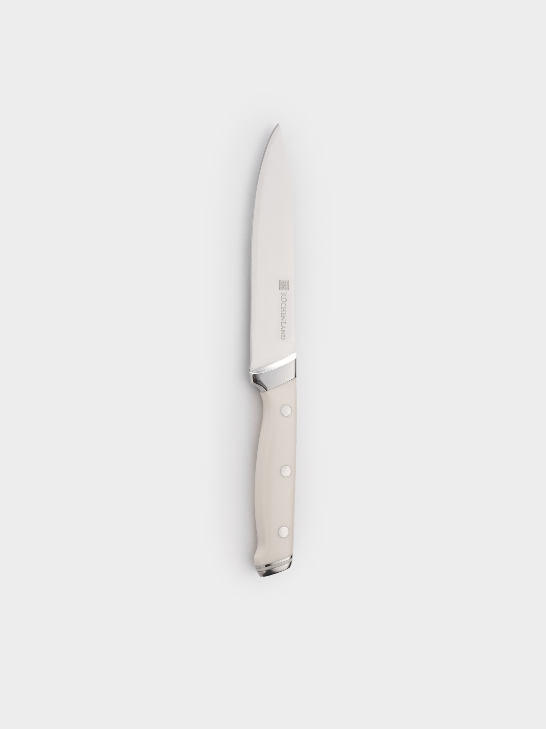 Ассортимент торговой марки Kuchenland пополнился новой линией кухонных ножей SOLO WHITE. В нее вошли нож для хлеба, поварской нож, нож для чистки овощей, ножи для нарезки.