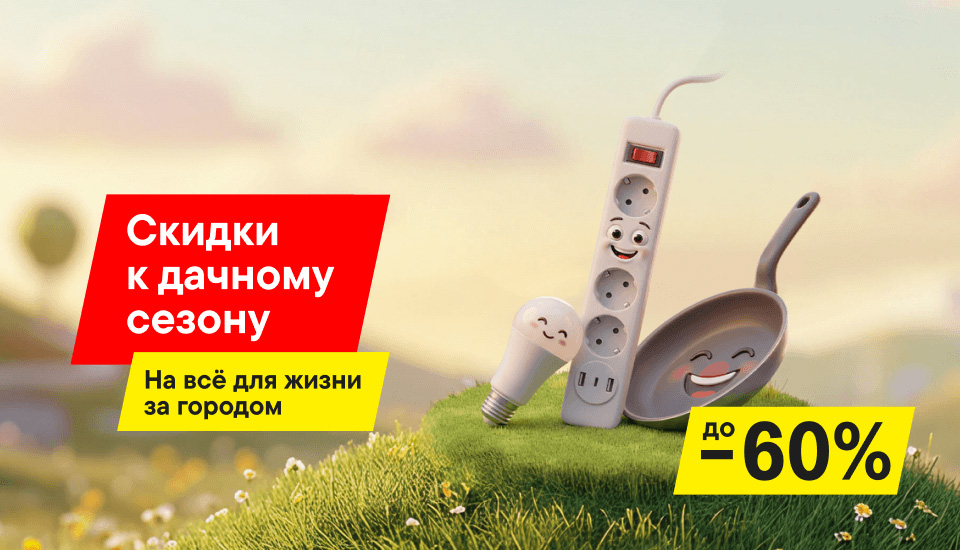 В "М.Видео" проводится акция "Скидки к дачному сезону". На выделенный ассортимент продукции действуют скидки до 60%. В посудном разделе представлены товары из ассортимента торговых марок Tefal, Rondell, TalleR, LP и др.