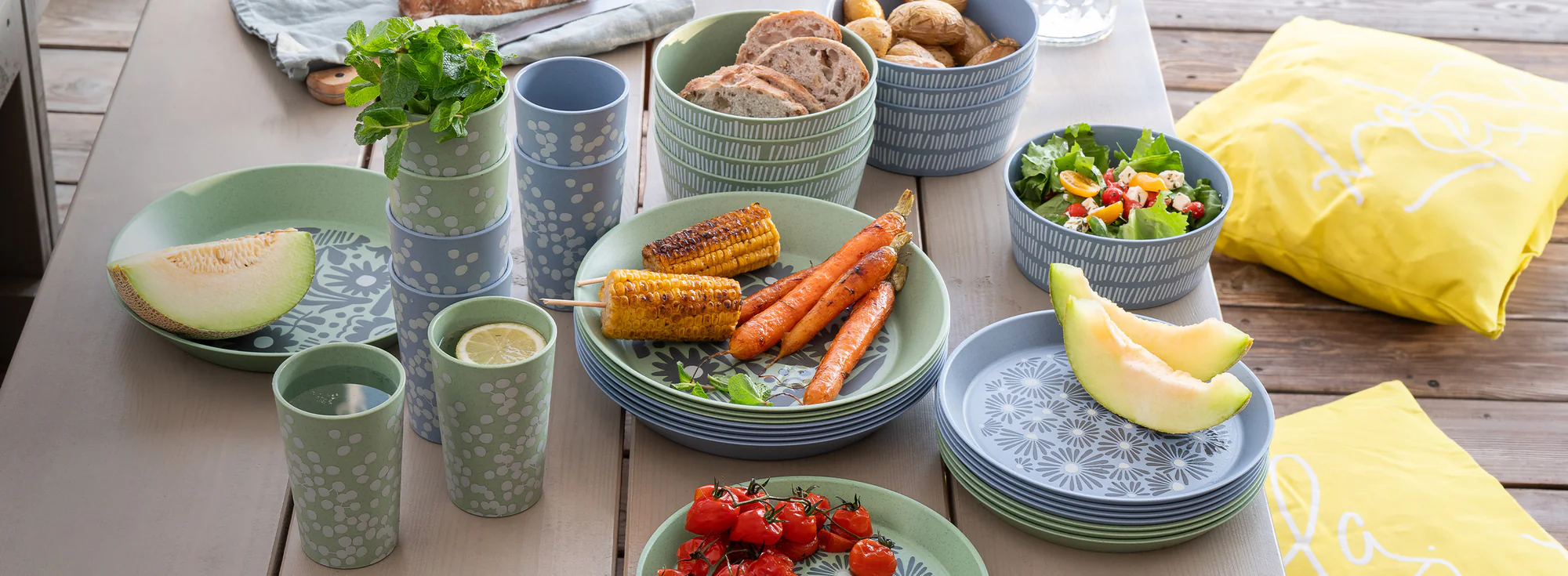 Посуда из коллекции BLOMSTER подходит для использования в помещении и на открытом воздухе, отличается ударопрочностью и возможностью мыть в посудомоечной машине. В состав материала не входит меламин.