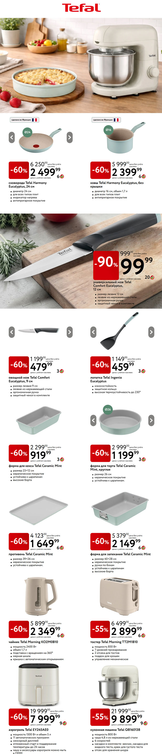 В линейке Tefal представлена наплитная посуда с антипригарным покрытием Harmony Eucalyptus, кухонные ножи Comfort Eucalyptus, формы для выпечки Ceramic Mint и т.д.