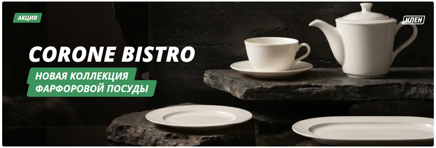 В компании "Клен" в продажу поступила новая серия фарфоровой посуды Corone серии Bistro. В нее вошли глубокие и мелкие тарелки, блюда, салатники, бульонница, чайные и кофейная пара, заварочный чайник, соусник, набор для специй. Изделия выполнены в нежном кремовом оттенке, формы отличаются лаконичностью и плавными контурами.
