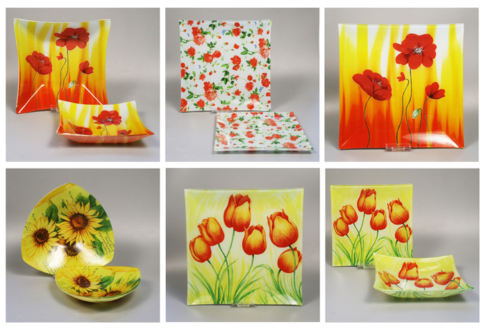 Ассортимент столовой посуды в компании "Стройремонт" пополнился новой коллекцией сервировочных стеклянных тарелок Macca Light с летними и тёплыми деколями.