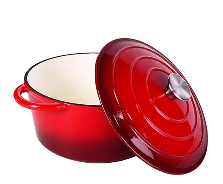 Кастрюля AMI выполнена в популярном у производителей ярко-красном оттенке, внутри эмаль белая глянцевая. Крышка теоретически можно использовать в качестве сковороды, а можно - как сервировочное блюдо.